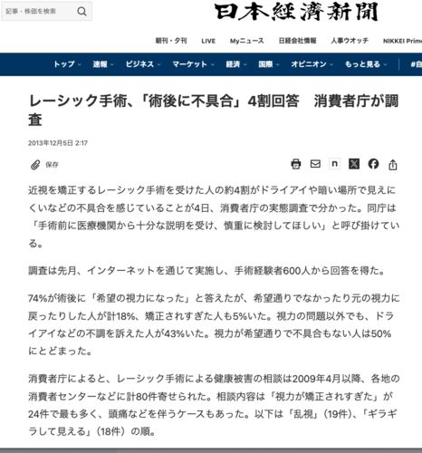 東京にて交流会のお知らせ レーシックやラゼック、RK、眼内レンズなどの視力矯正手術後に、何らかの後遺症や合併症を発症してしまった方や、その家族やご友人などを対象とした交流会を、 2024年6月22日 (土) に開催する予定です。 参加希望の方は、下記のフ…